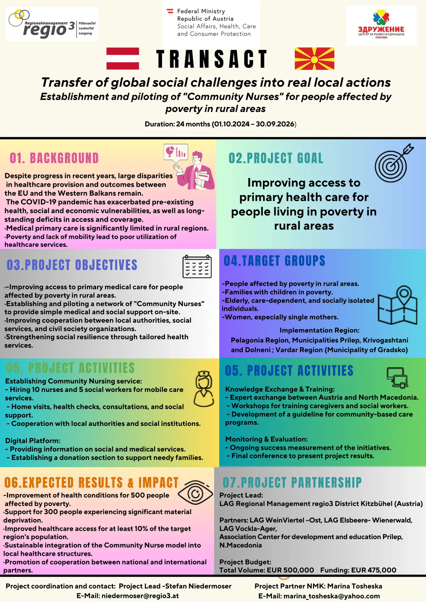 Преку проектот за прв пат во Република Северна Македонија, и во регионот ќе се пилотира услуга – Медицинска сестра во заедницата со цел добрите практики од ЕУ за осигурување на здравствена и социјална заштита на граѓаните, а особено на лицата во социјален ризик да се применат и во оваа држава.